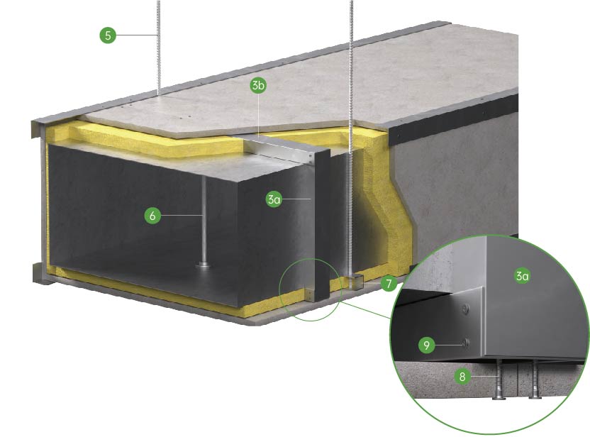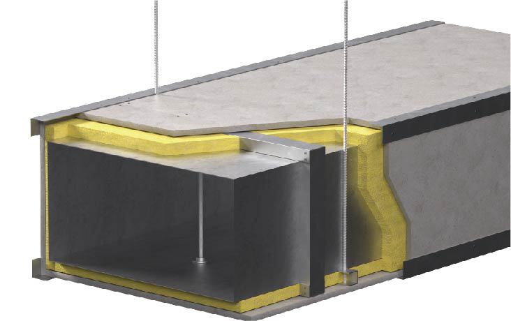 | 风管构造 | 耐火极限 | 组成构造 | 占用空间高度 | 每平方重量 | 装配方式 | 使用场合 | ||